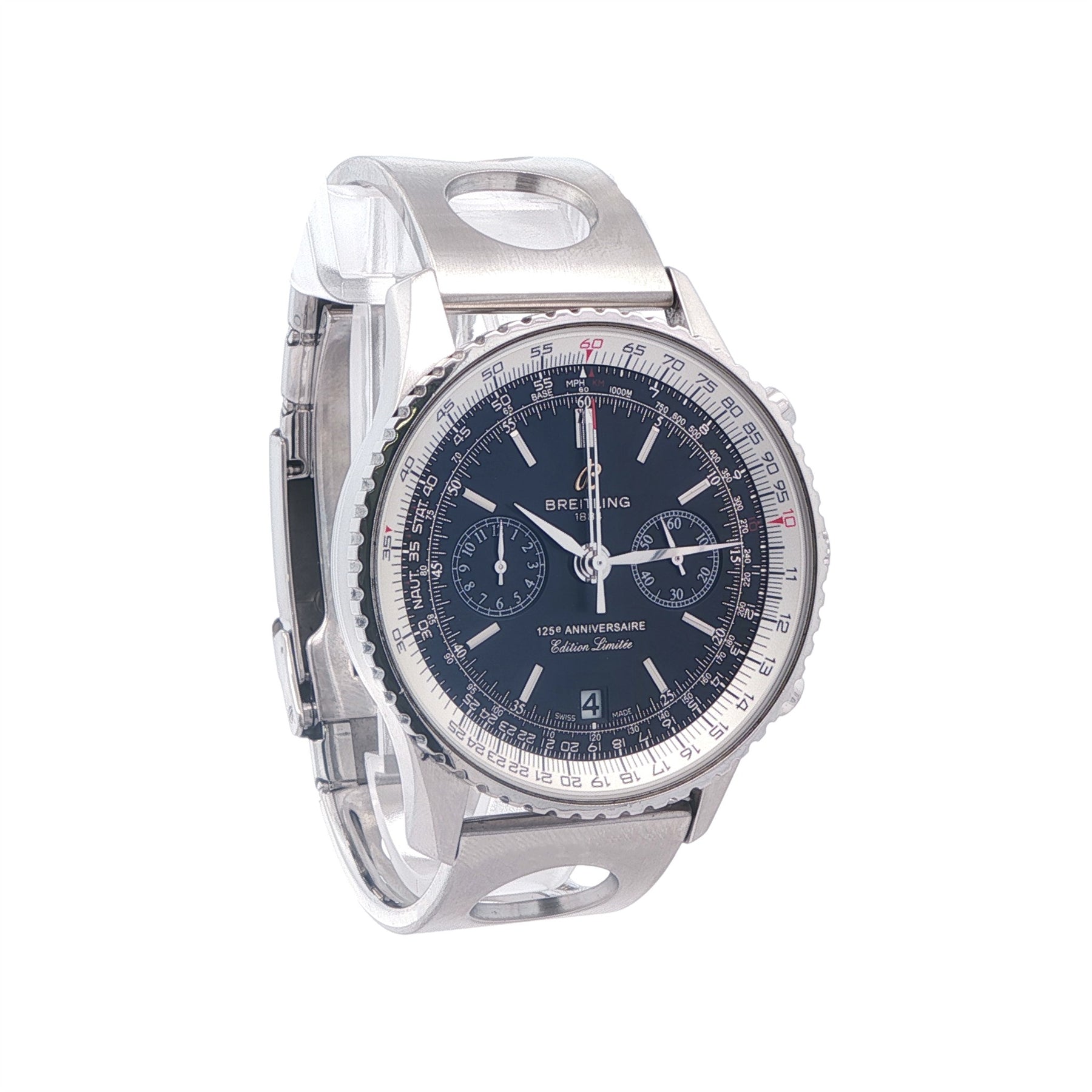 Celebrate a legacy of aviation excellence with this limited-edition Navitimer, crafted for Breitling’s 125th anniversary in 2009. Featuring the iconic slide-rule bezel, classic dual chronograph layout, and a robust stainless steel case, it comes fitted with Breitling’s unique, specially designed anniversary bracelet for added distinction. With only 2,009 pieces produced, this collector’s edition is a rare opportunity for enthusiasts seeking both style and heritage.