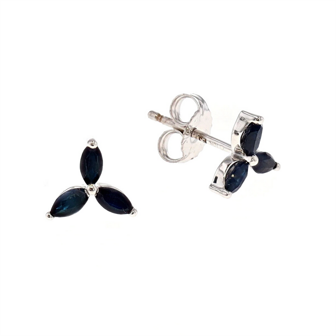 10K White Gold Sapphire 0.12ctw Diamond Stud Earrings