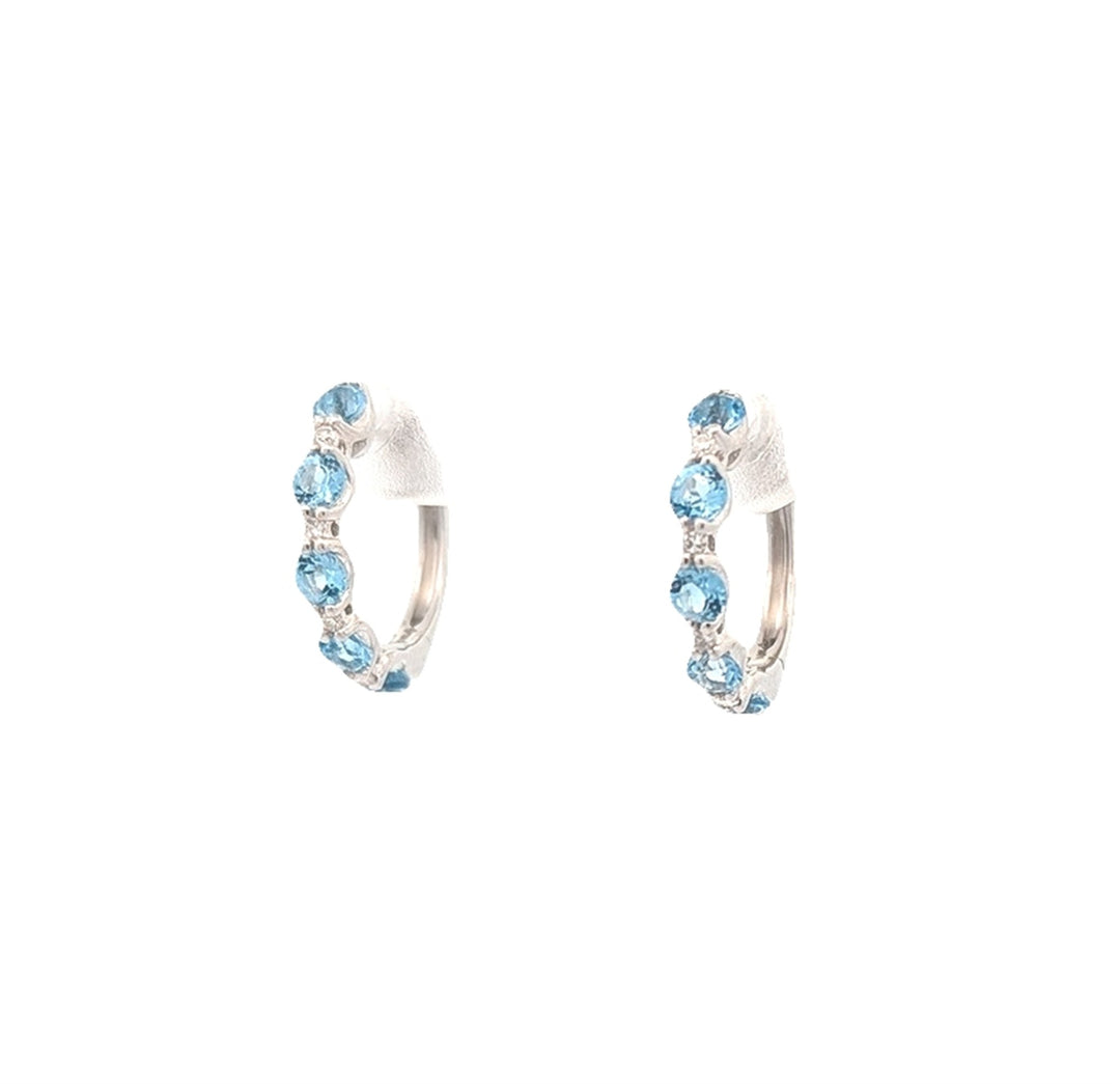 14K White Gold Blue Topaz 0.12ctw Diamond Stud Earrings