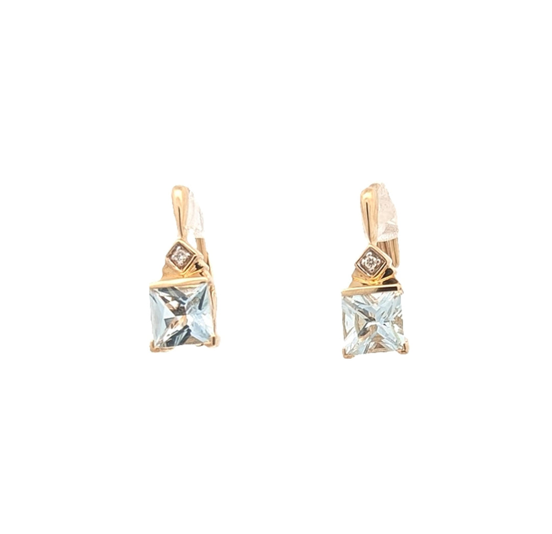 14K White Gold Blue Zircon 0.07ctw Diamond Stud Earrings