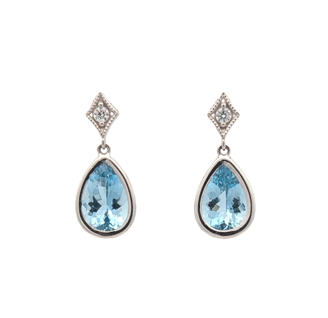 10K White Gold Aquamarine 0.12ctw Diamond Stud Earrings