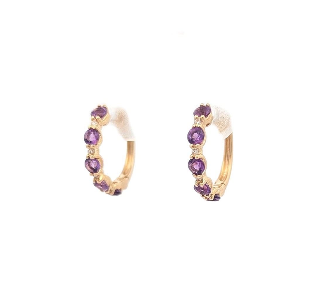 10K White Gold Amethyst 0.12ctw Diamond Stud Earrings