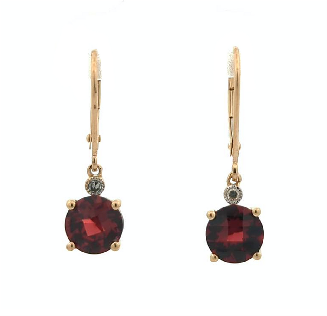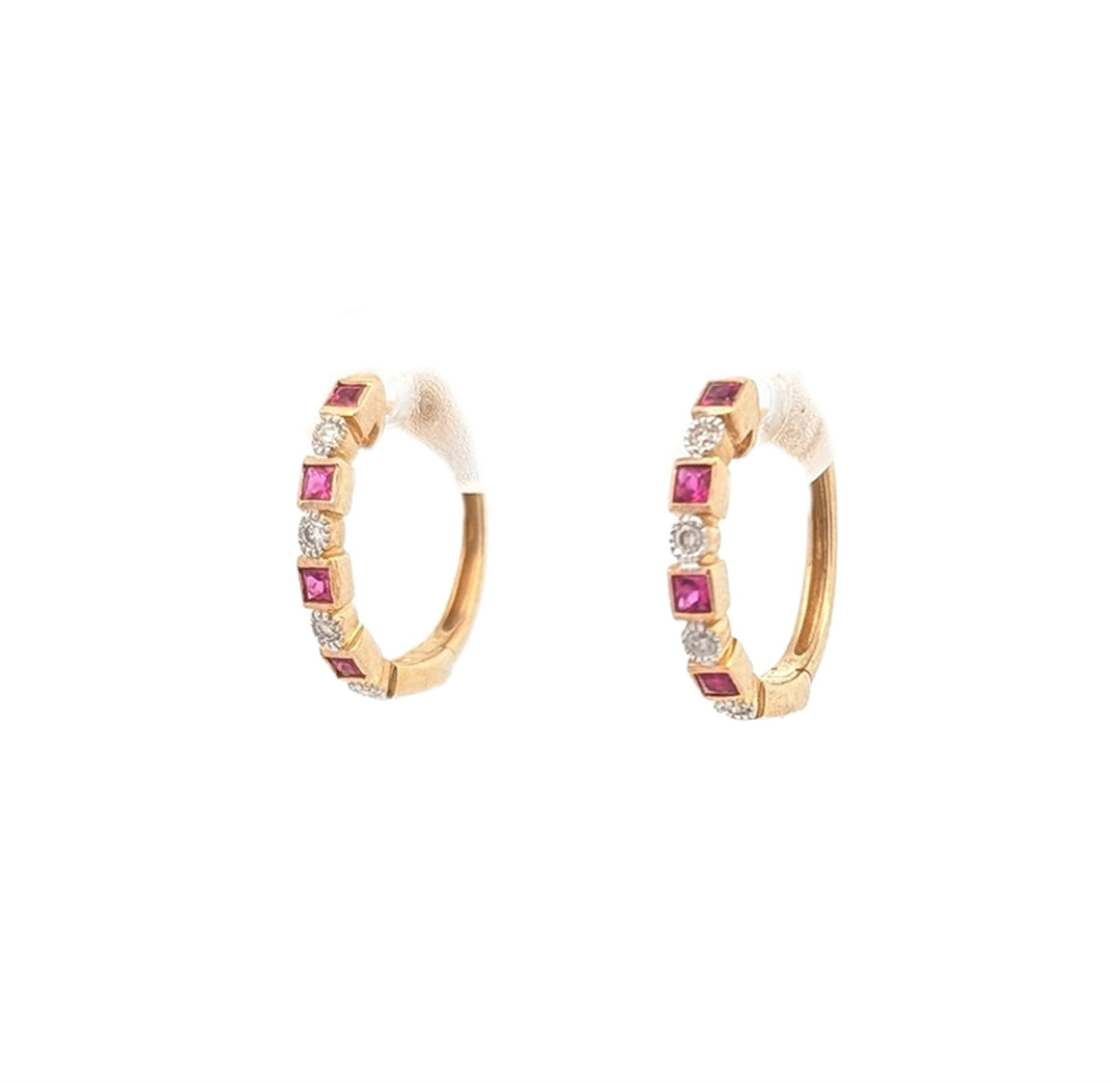 14K Yellow Gold Ruby 0.02ctw Diamond Stud Earrings