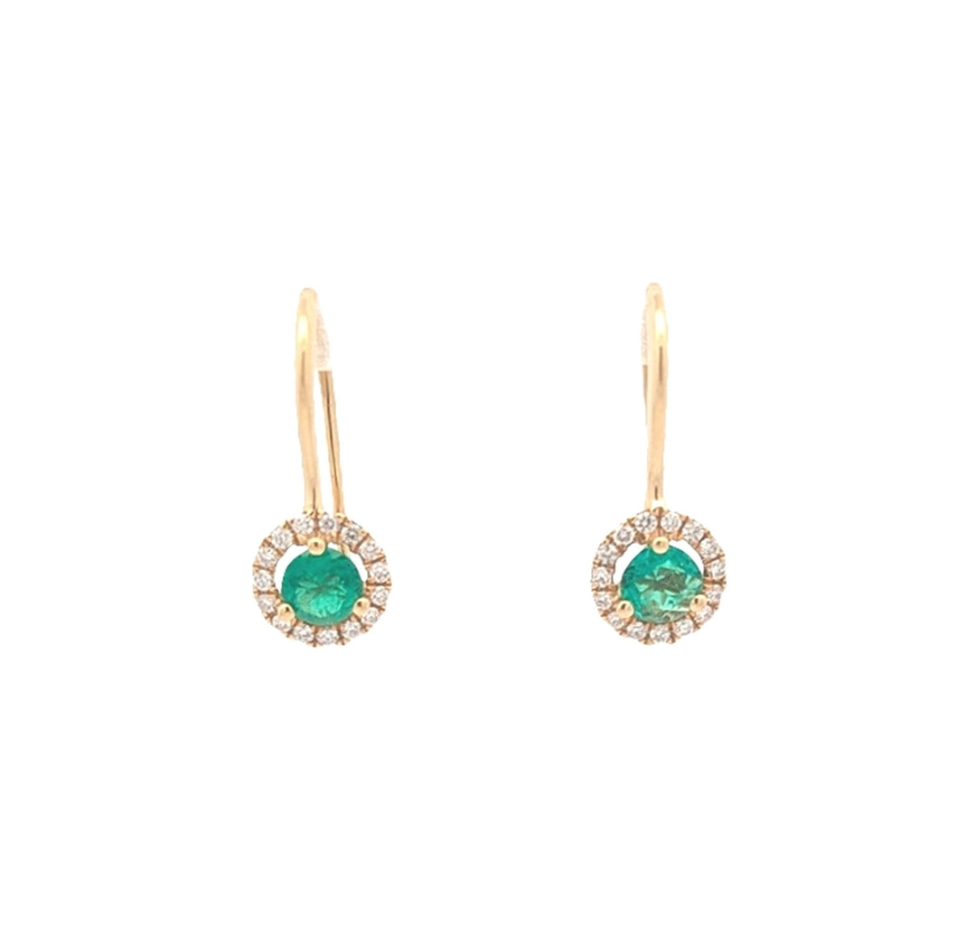 14K Yellow Gold Emerald 0.02ctw Diamond Stud Earrings