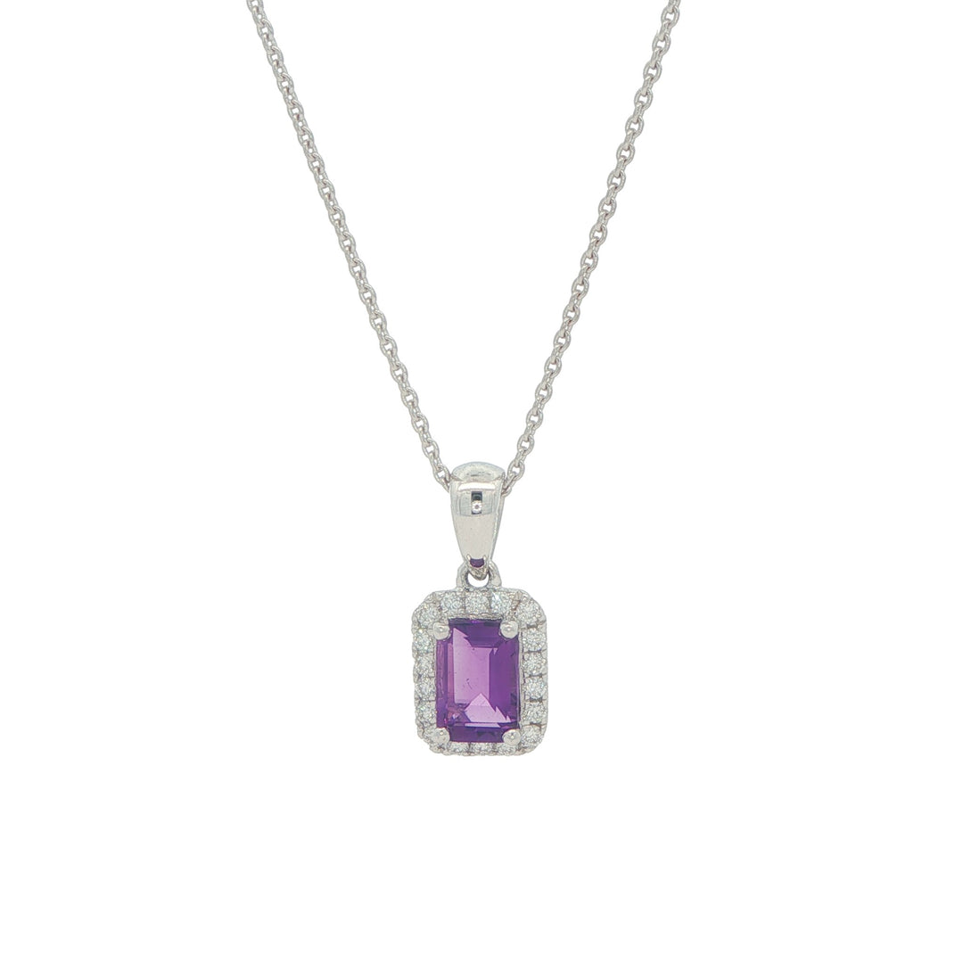 18K White Gold 0.11ctw Diamond Amethyst 18" Necklace