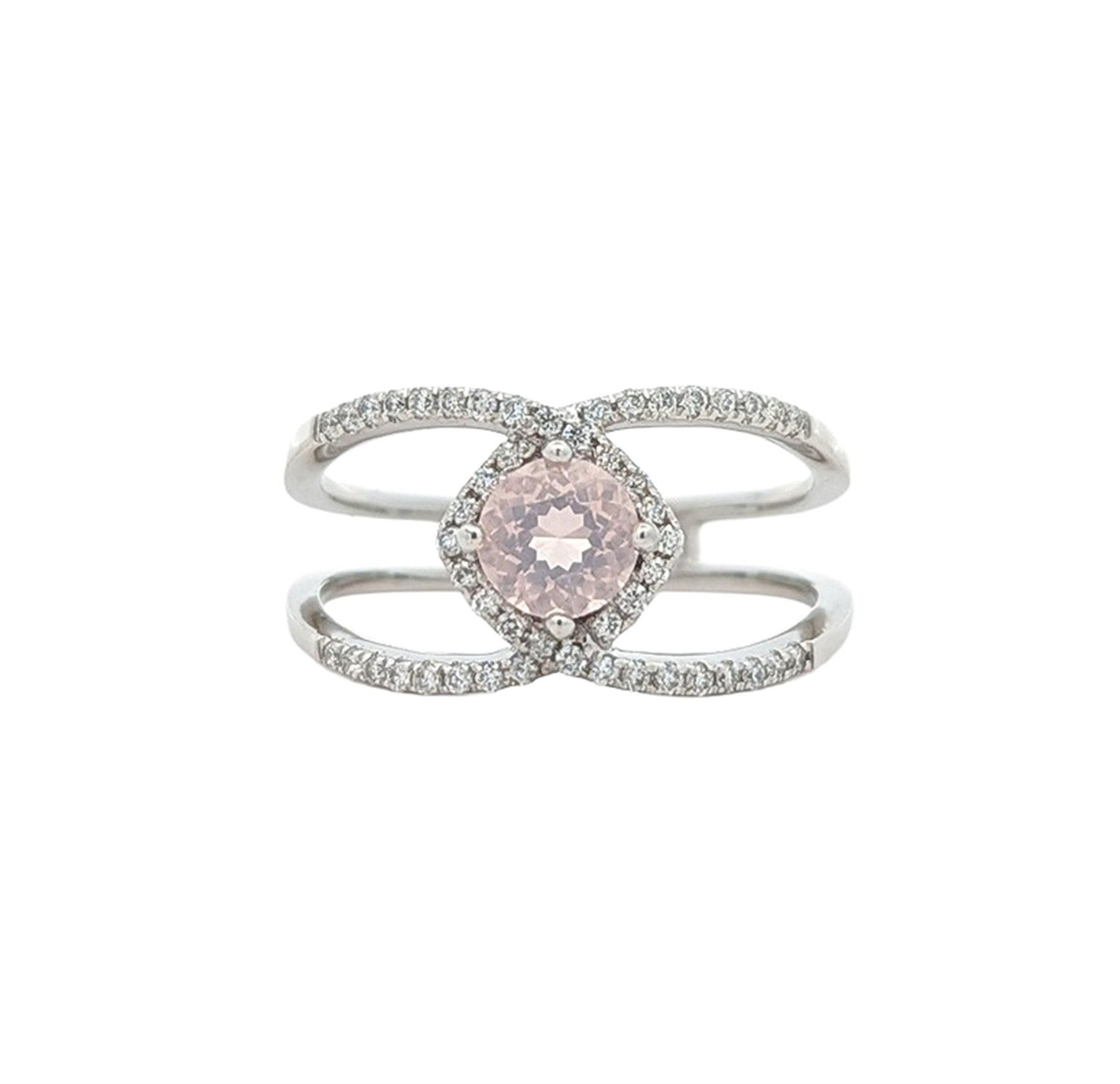 10KT White Gold Rose Quartz and 0.20ctw Diamond Ring