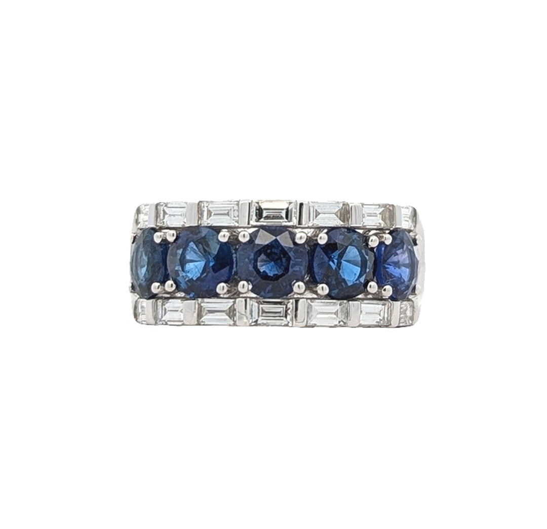18KT White Gold Natural Blue Sapphire and 0.45ctw Diamond Estate Ring