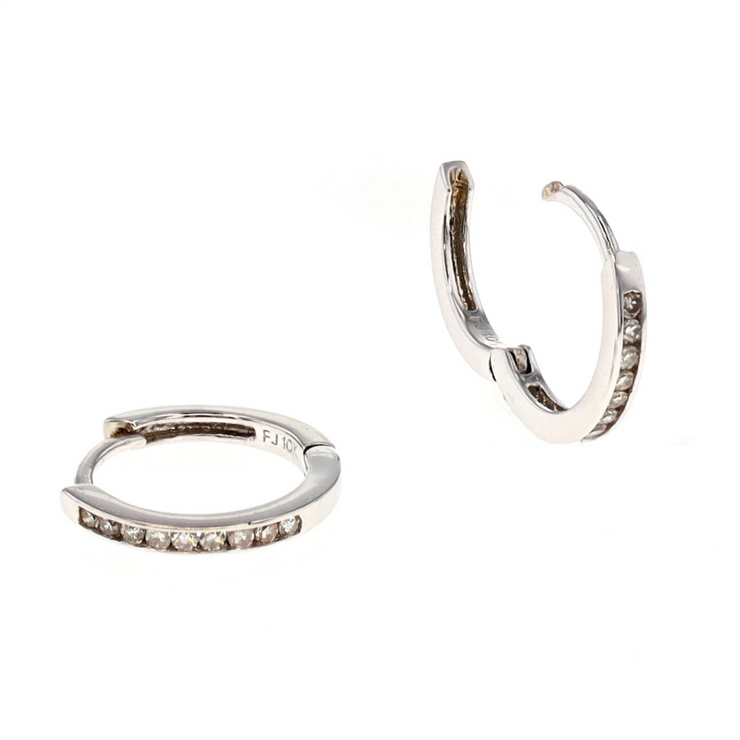 10KT White Gold 0.10ctw Diamond Hoop Earrings