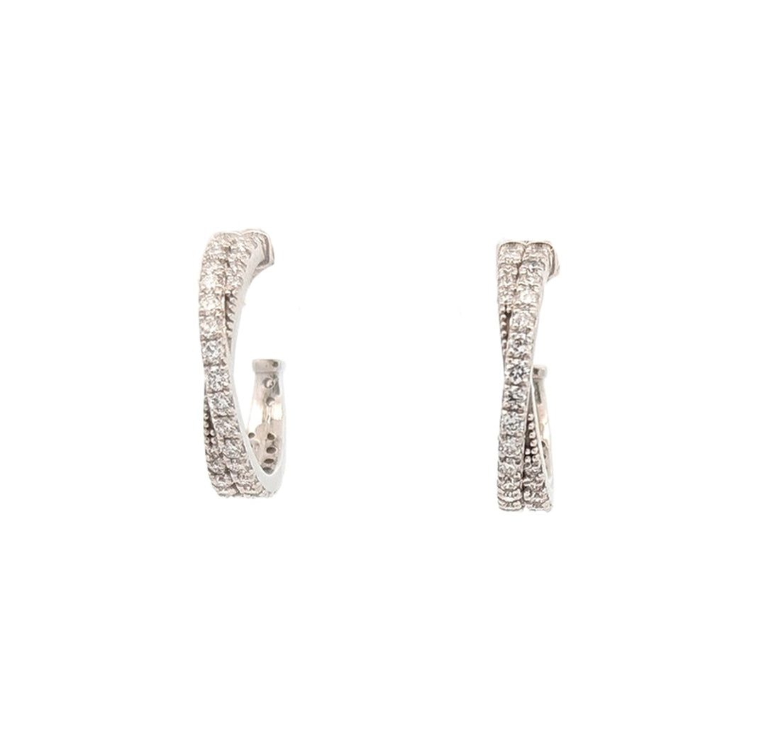 10KT White Gold 0.05ctw Diamond Twist Pave Huggie Earrings