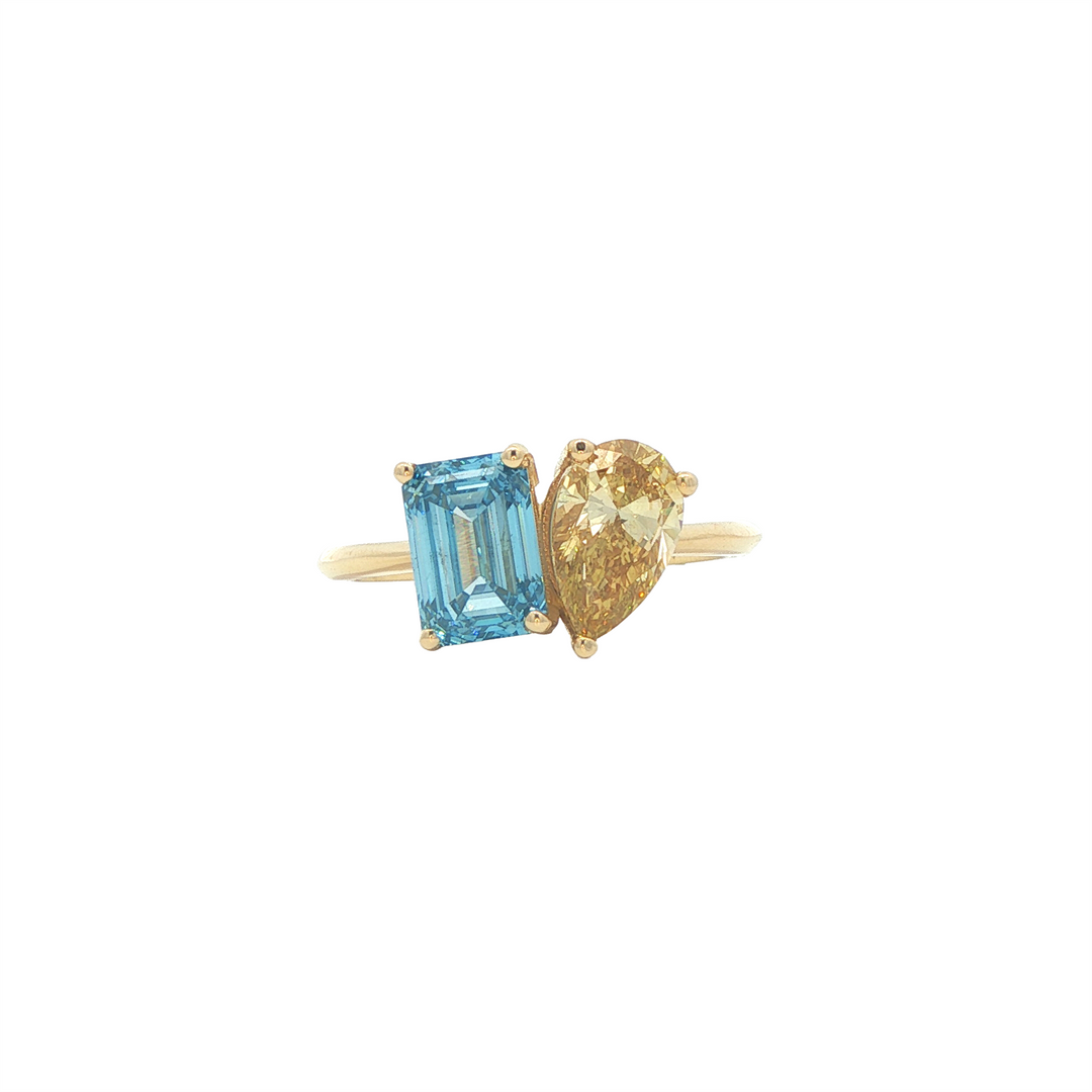 14K Yellow Gold 2.52ctw Champagne & Blue Lab Grown Diamond Toi Et Moi Rings