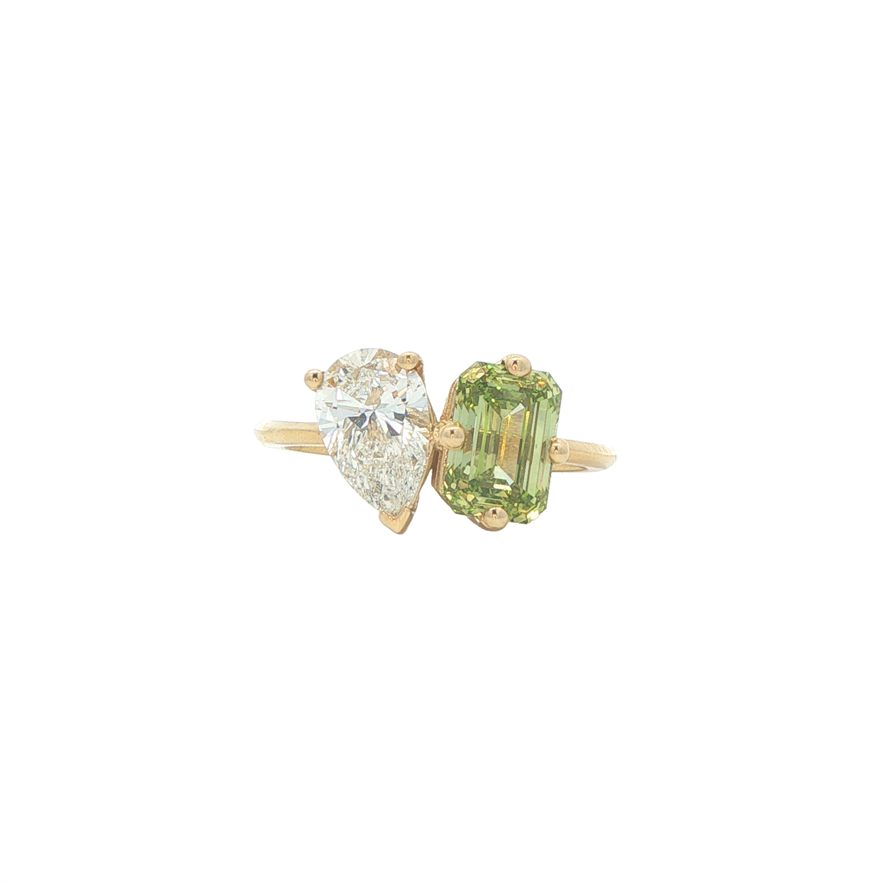 14K Yellow Gold 2.74ctw Green & White Lab Grown Diamond Toi Et Moi Ring
