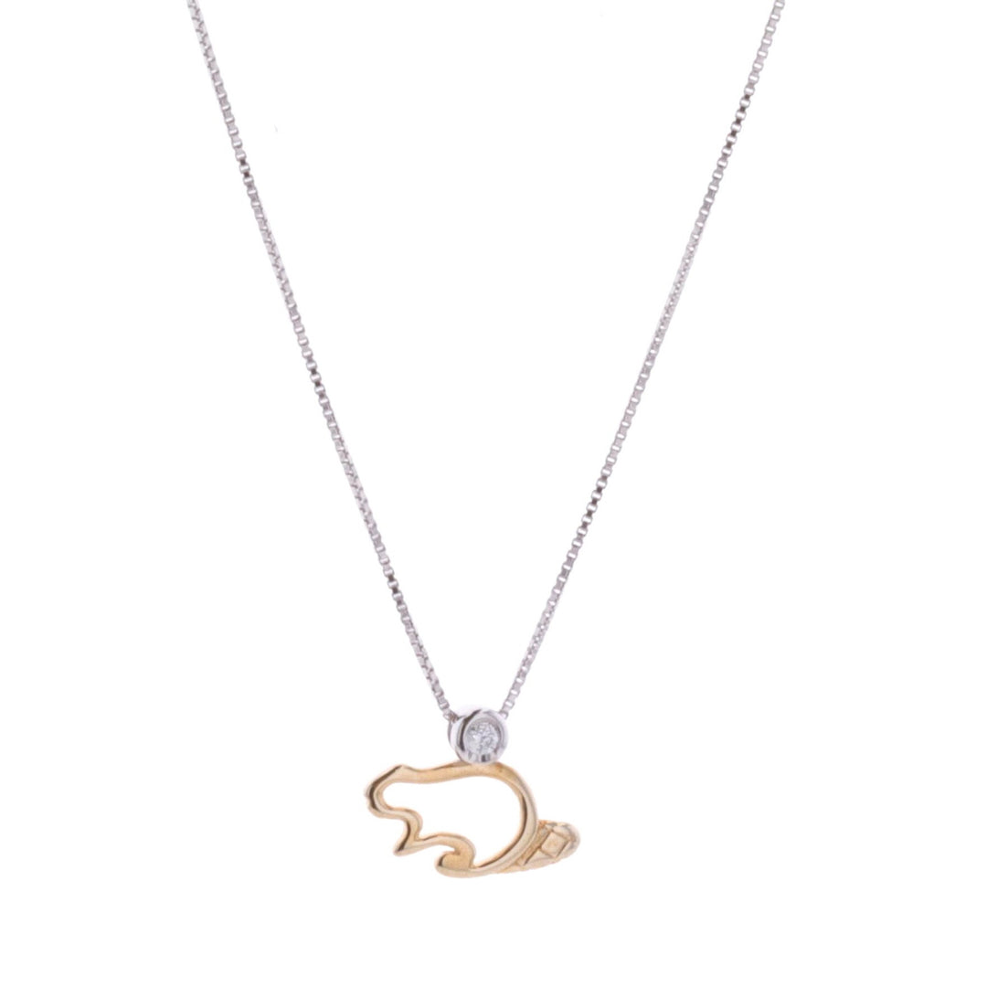 10KT White Gold 0.05ctw Canadian Diamond Beaver Necklace