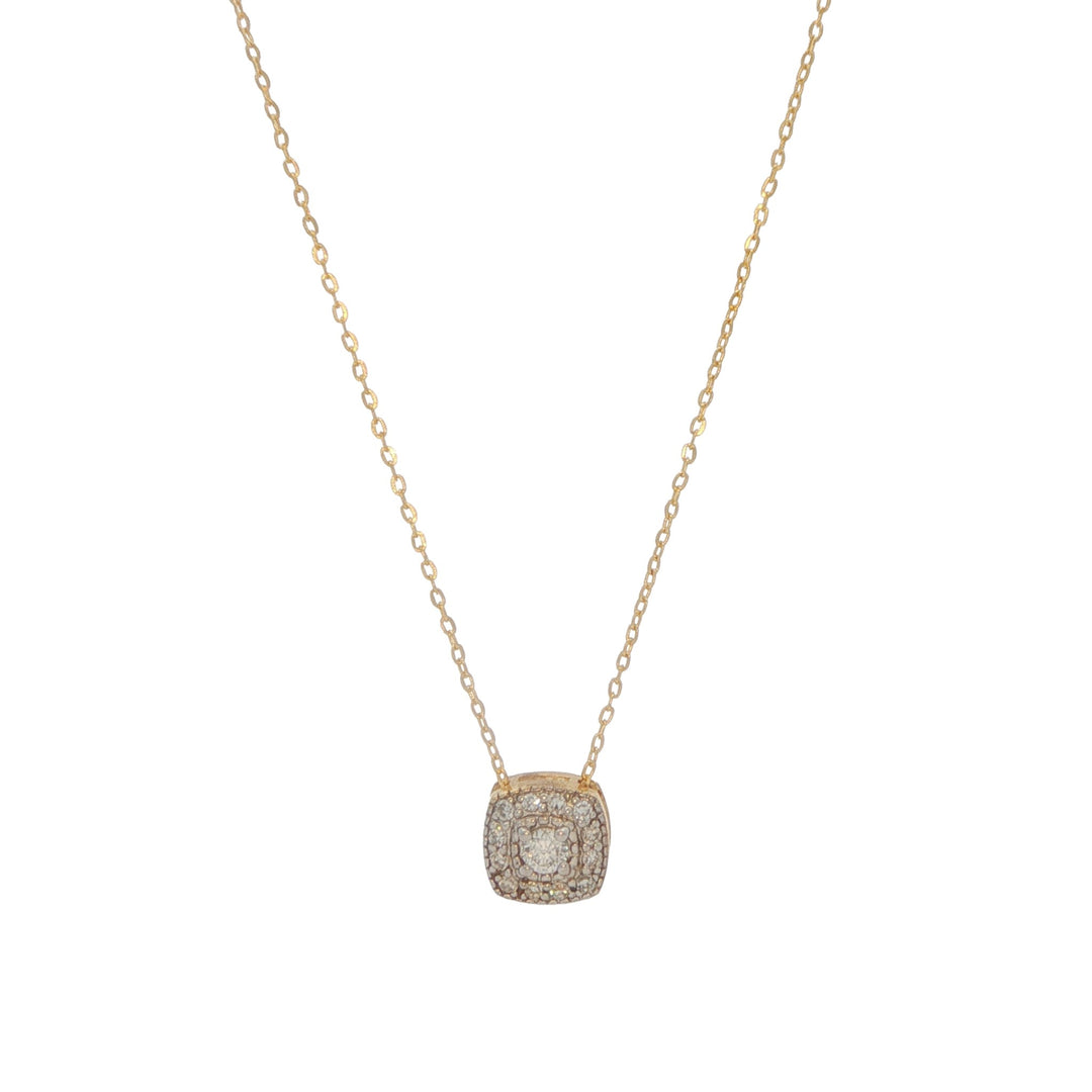 10KT Yellow Gold 0.08ctw Diamond Icicles Princess Halo Necklace