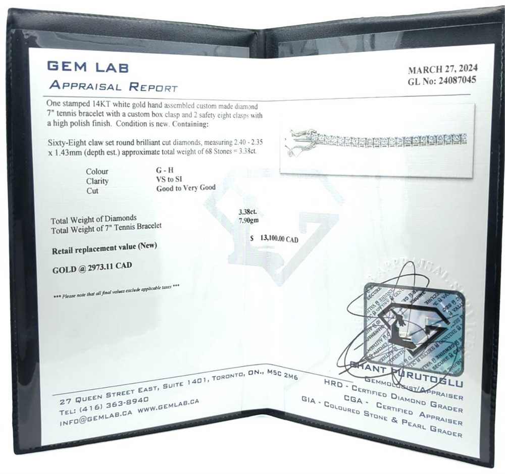 14KT White Gold 3.38ctw Diamond Estate 7" Tennis Bracelet
