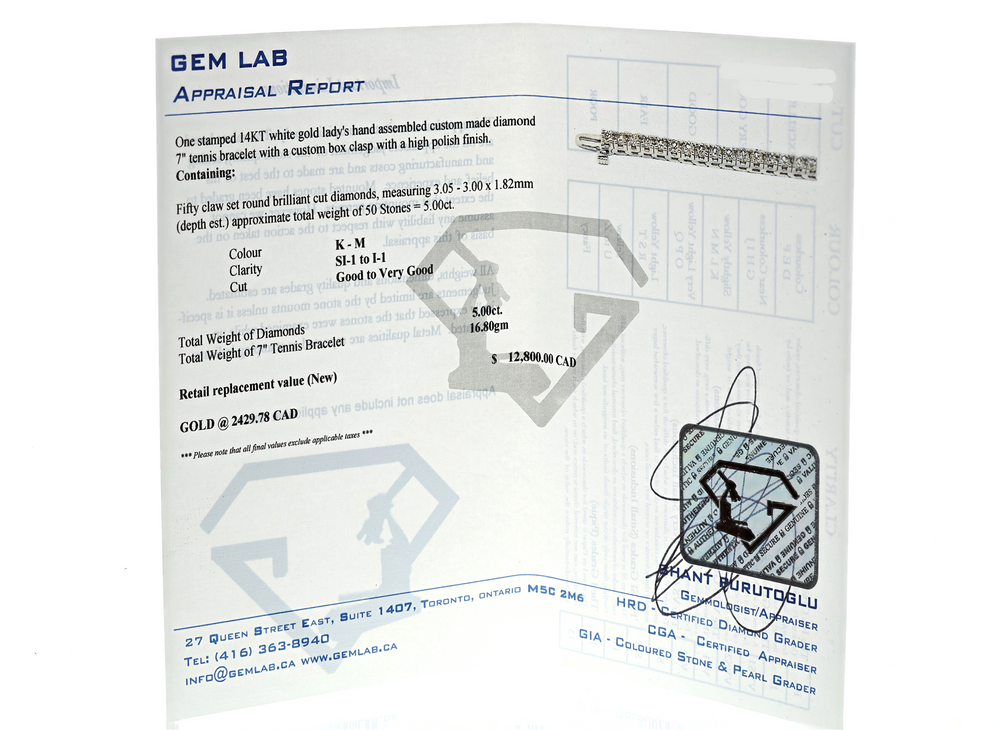 14KT Yellow Gold 4.56ctw Lab Grown Diamond 7" Bracelet