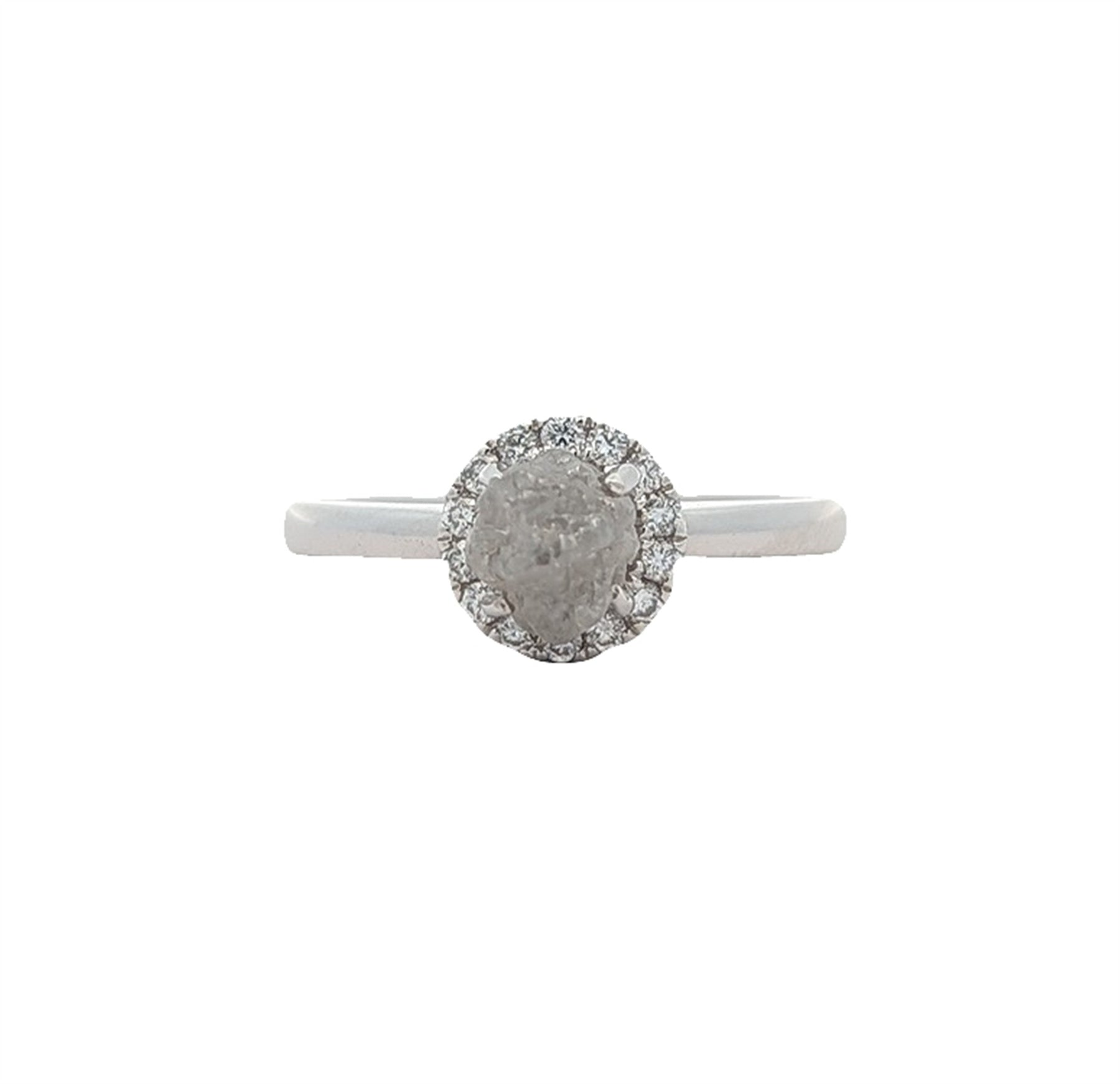 One claw set rough cut diamond, measuring 6.00 - 5.50 x 5.50mm (depth est.) approximate weight of 1.42ct.