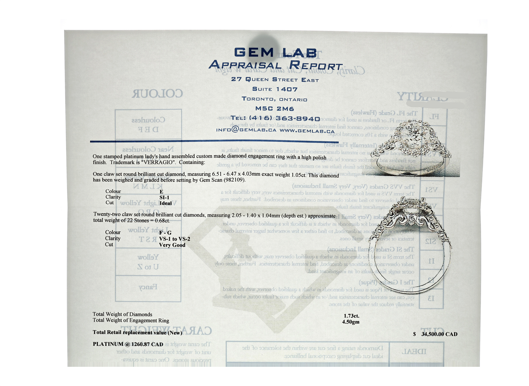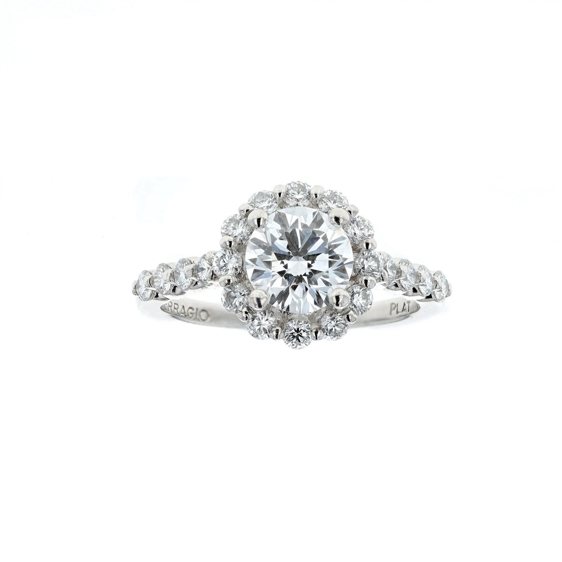 One stamped platinum lady's hand assembled custom made diamond engagement ring with a high polish finish. Trademark is "VERRAGIO".