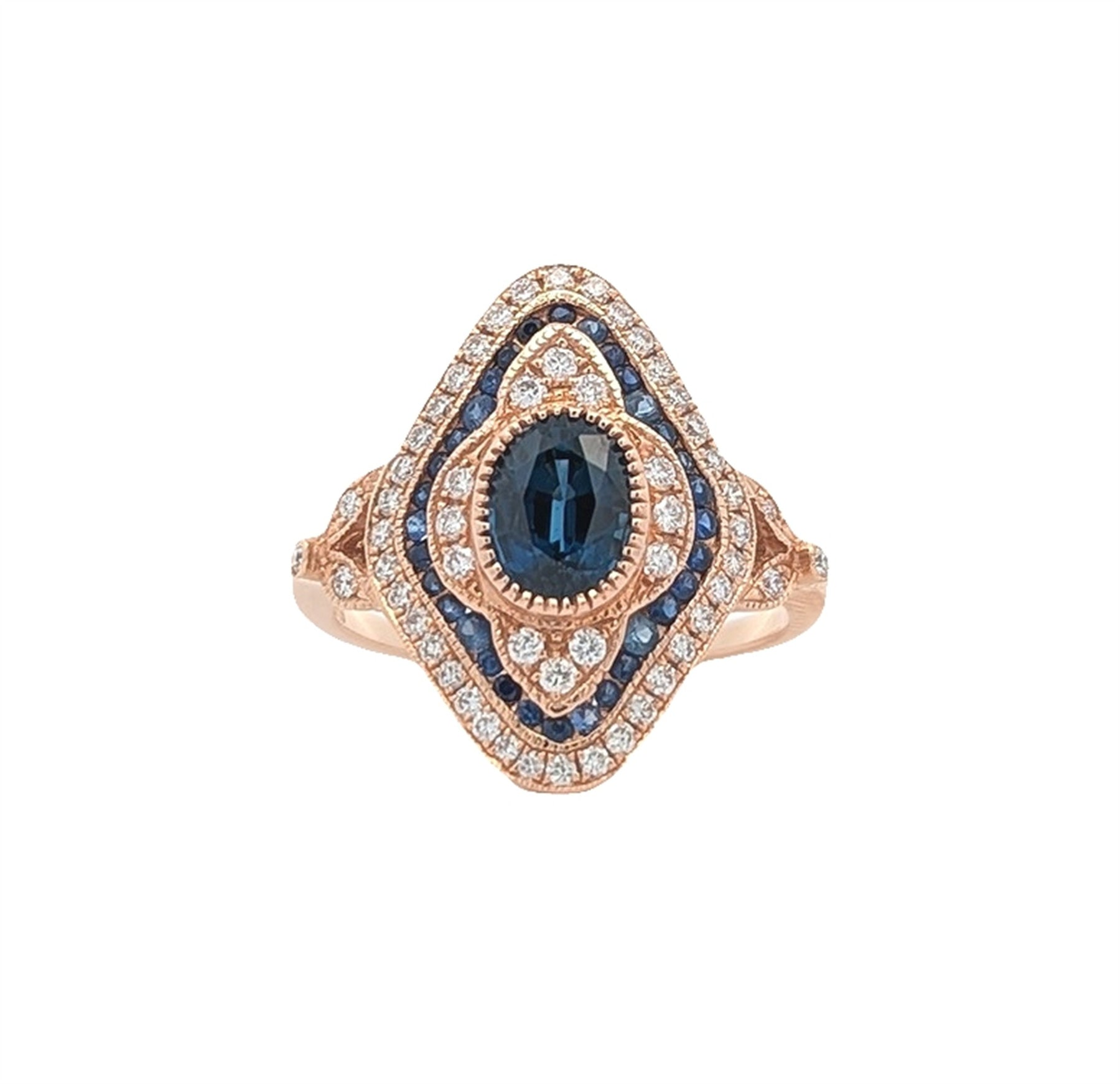 18KT Rose Gold Natural Blue Sapphire and 0.40ctw Diamond Estate Ring