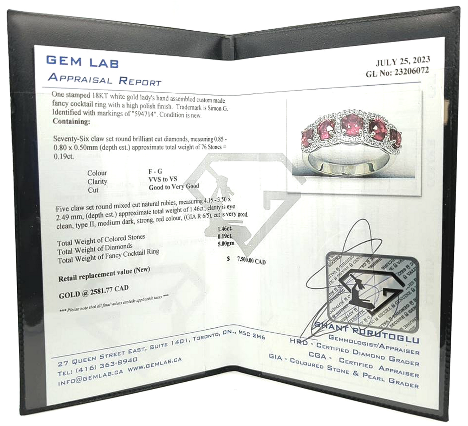 18KT White Gold Natural Ruby and 0.19ctw Diamond "Simon G" Estate Ring