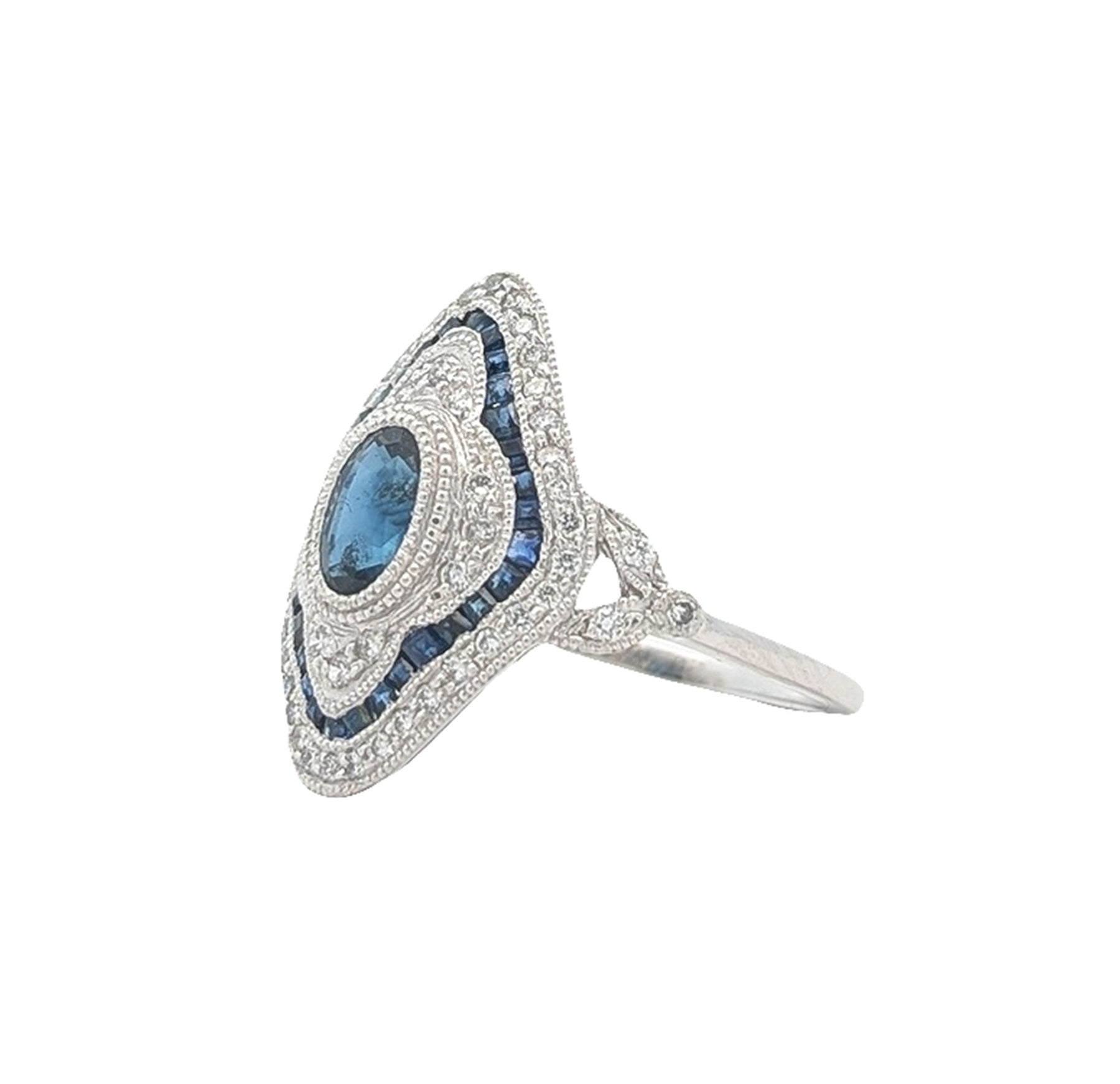 Platinum Natural Blue Sapphire and 0.30ctw Diamond Estate Ring