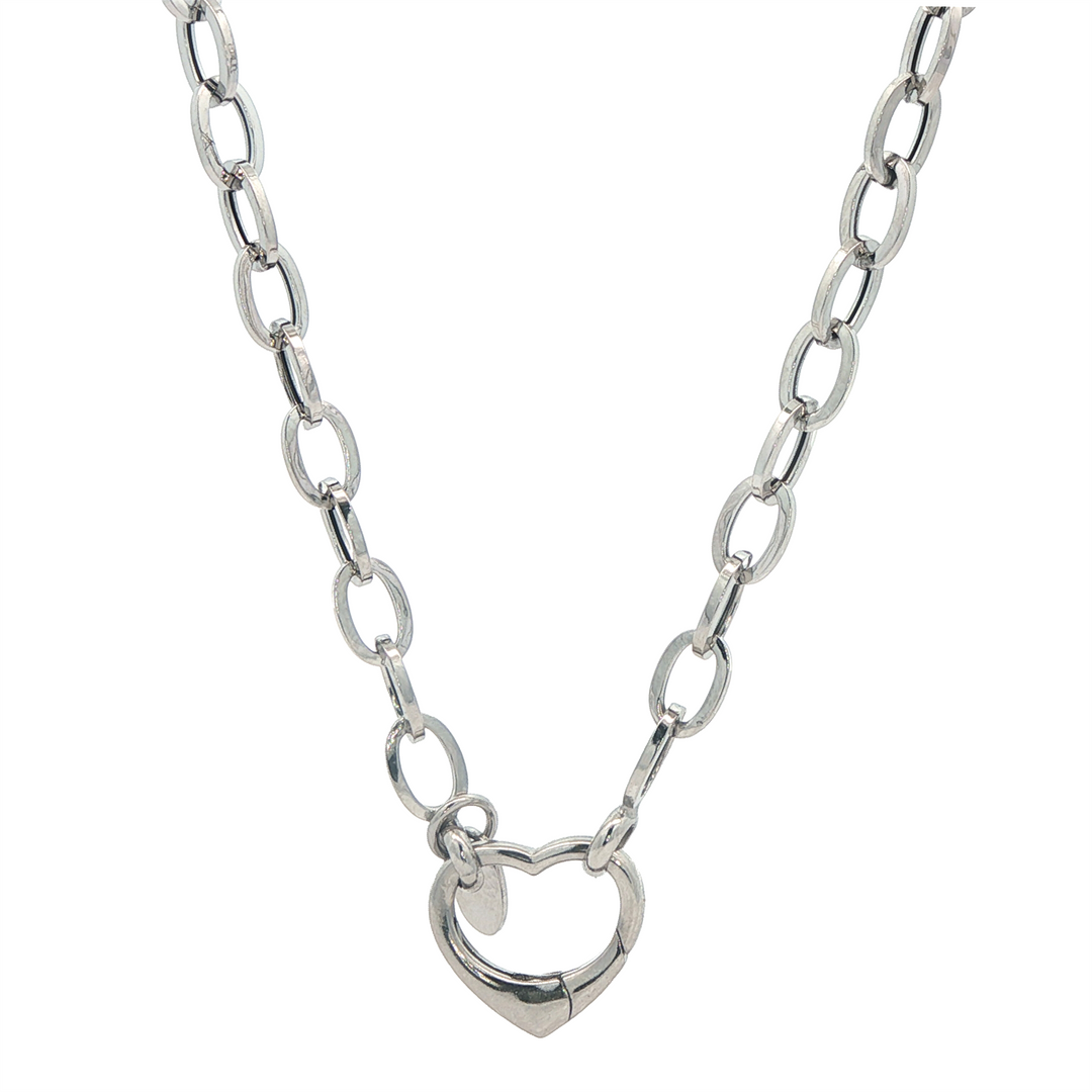 10K White Gold 3mm Paperclip Heart Clasp 17.75" Chain