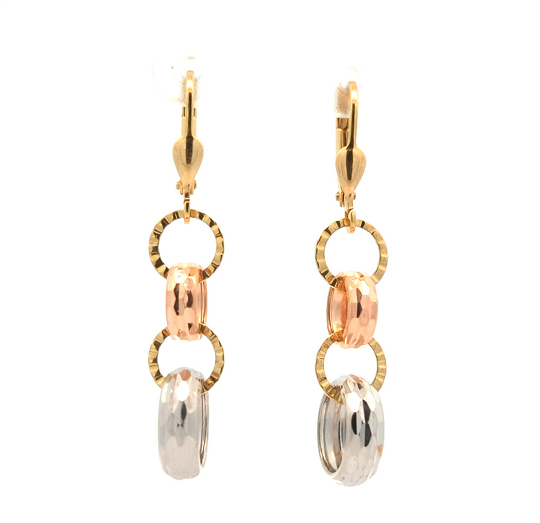 10KT Yellow, White and Rose Gold Dangle Earrings