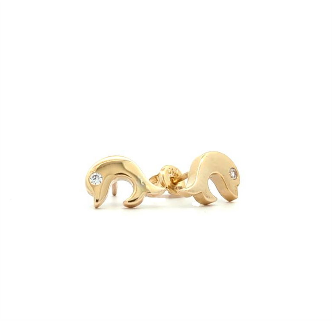 10KT Yellow Gold CZ Dolphin Stud Earrings
