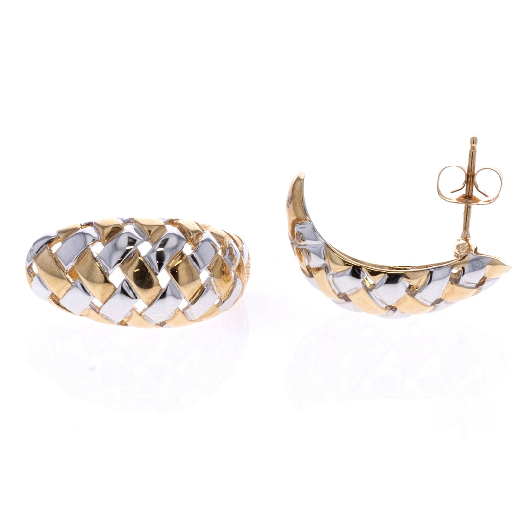 14KT Yellow and White Gold Bamboo Look Stud Earrings