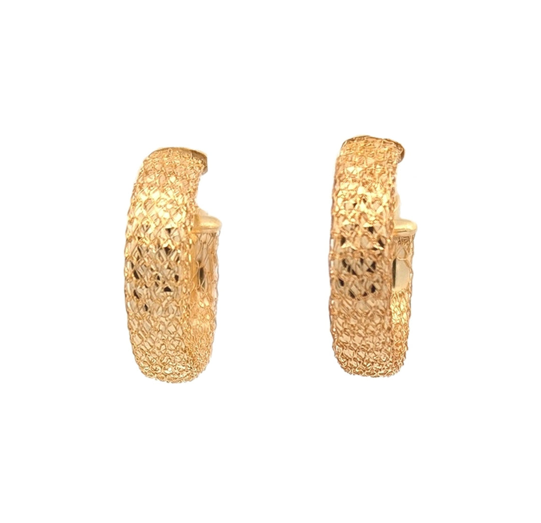 10K Yellow Gold Mesh Diamond Cut Hoop Earrings
