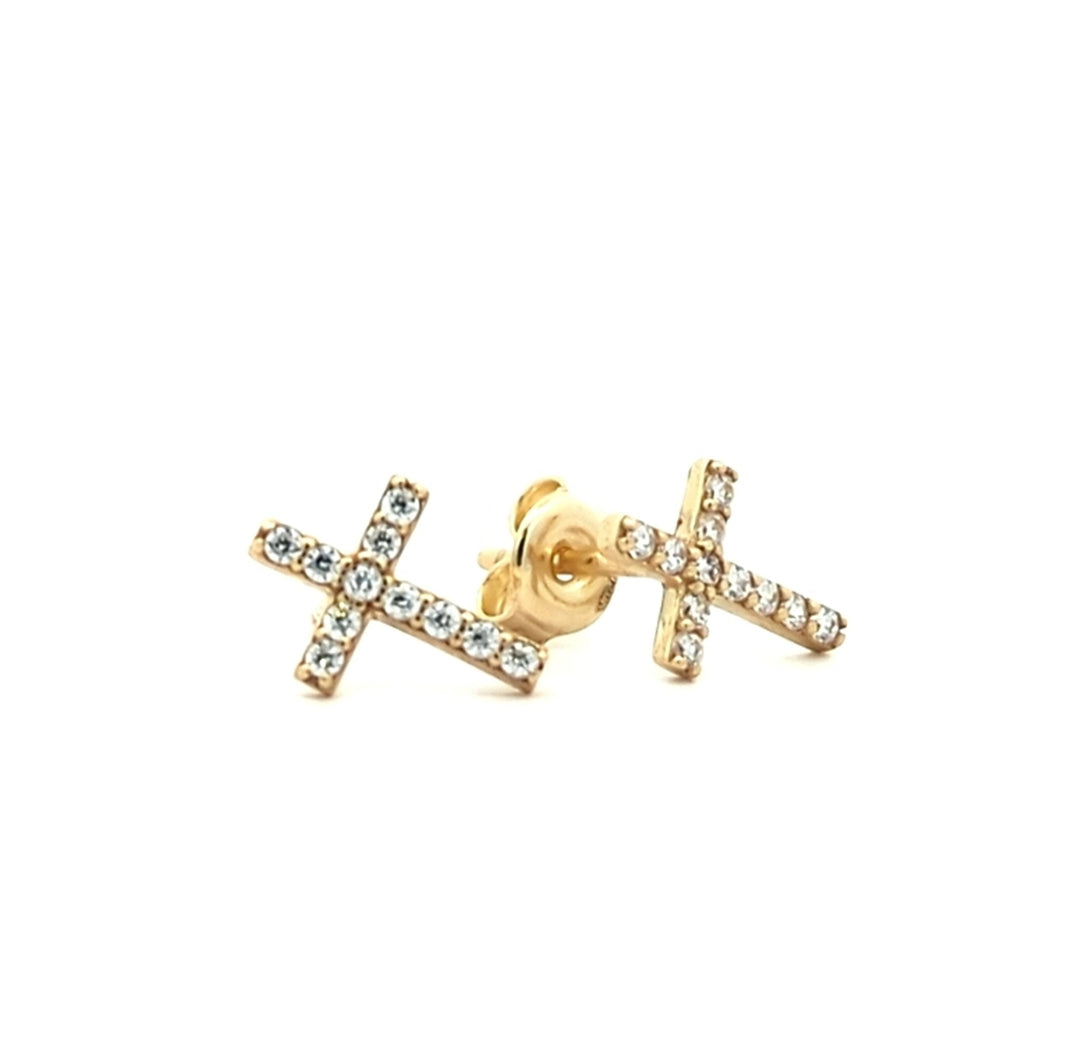 10KT Yellow Gold Cubic Zirconia Cross Stud Earrings