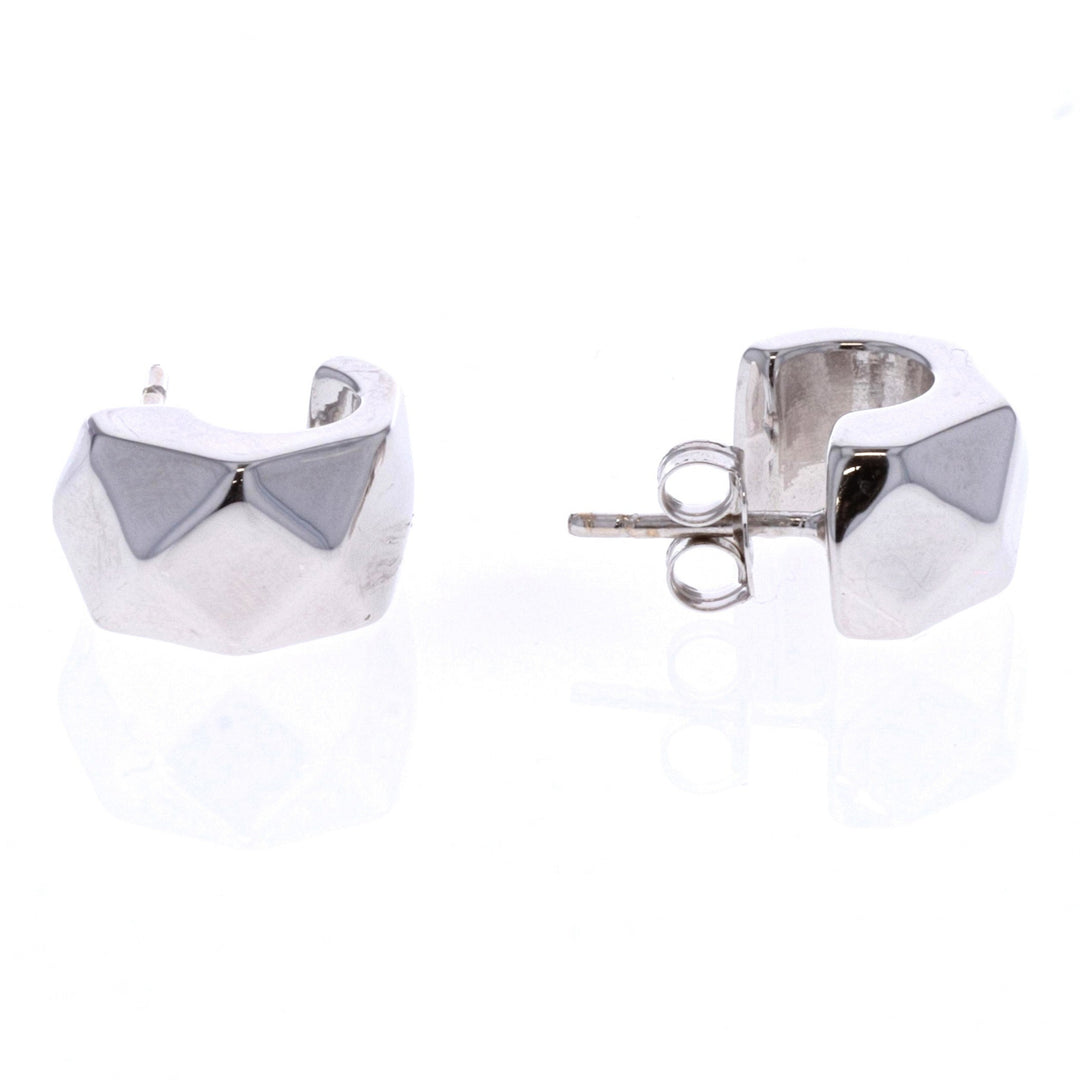 14KT White Gold Half Hoop Stud Earrings