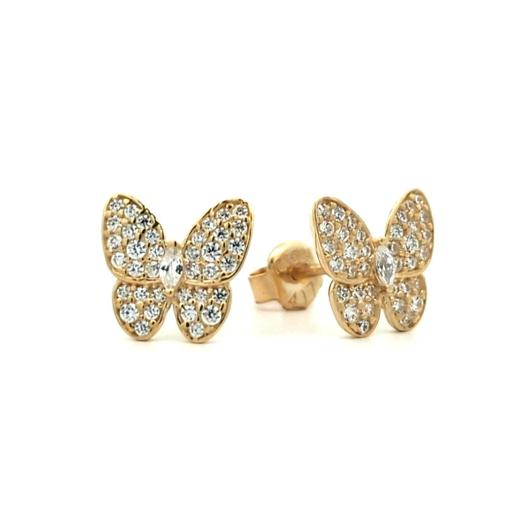 10KT Yellow Gold Cubic Zirconia Butterfly Stud Earrings