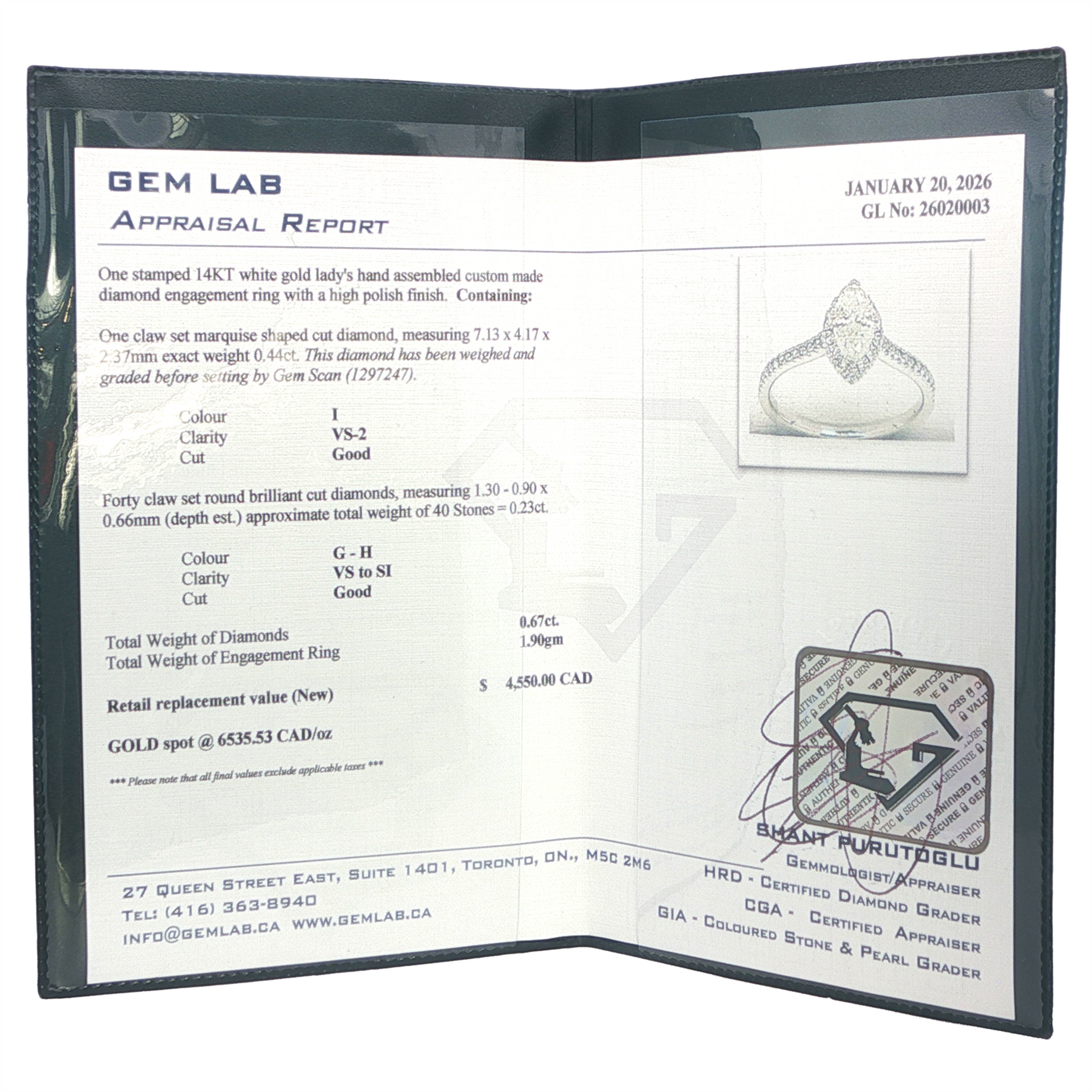 14KT White gold 0.67ctw Marquise Diamond Engagement Ring