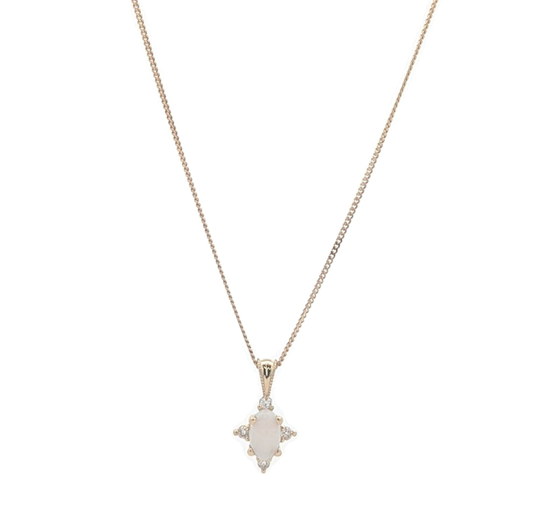 10KT Yellow Gold Opal and 0.03ctw Diamond 18" Necklace