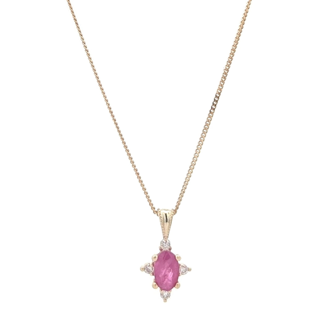 10KT Yellow Gold Ruby and 0.03ctw Diamond 18" Necklace