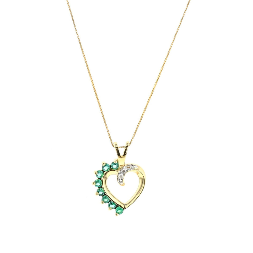 10KT Yellow Gold Emerald and 0.03ctw Diamond Necklace