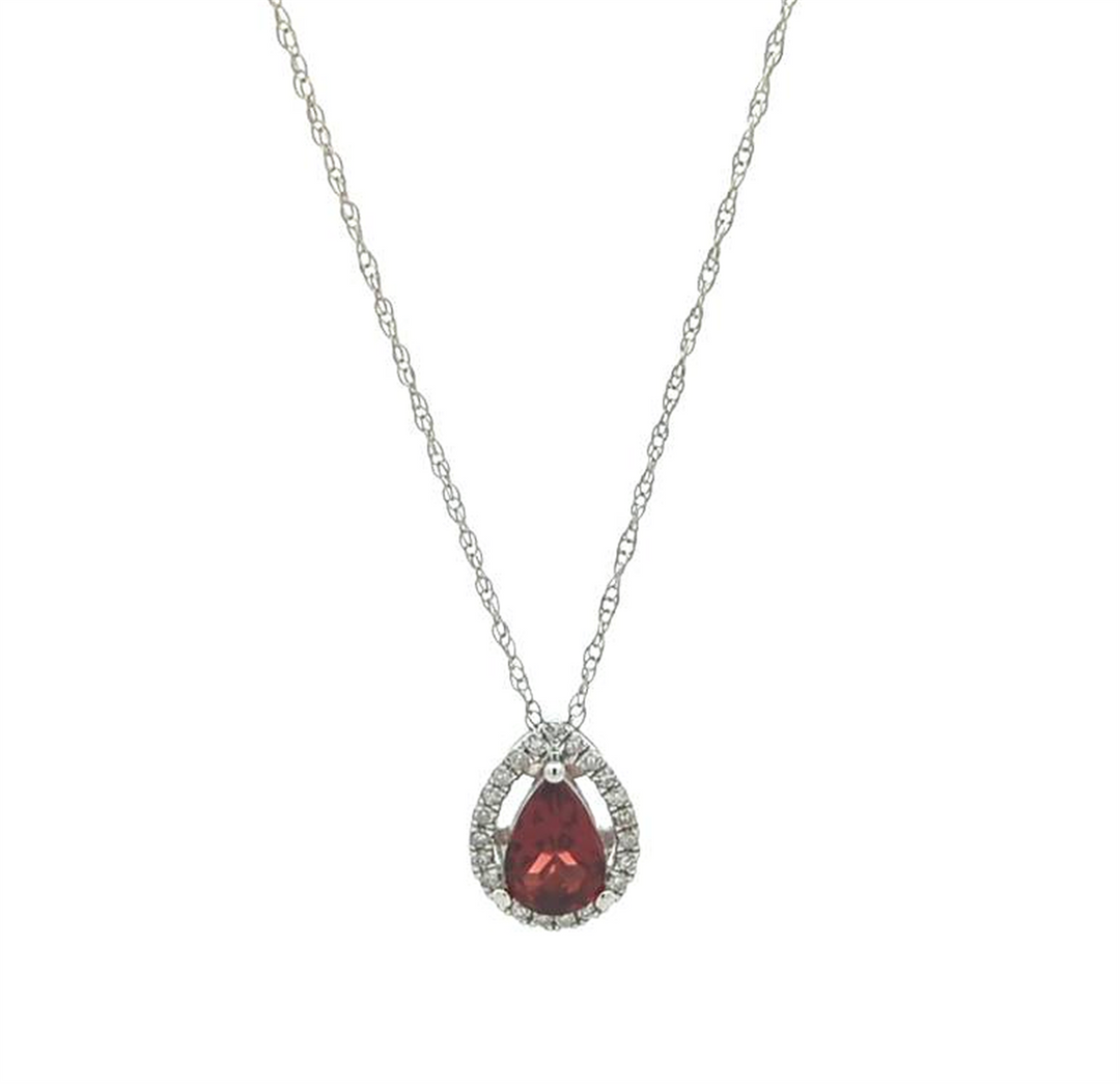 14KT White Gold Garnet and 0.07ctw Diamond Necklace