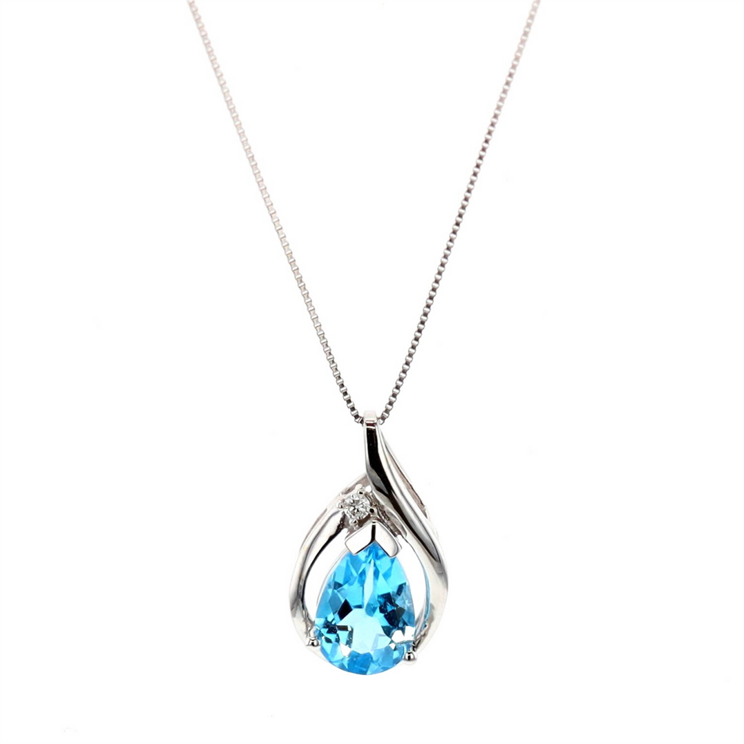 10KT White Gold Blue Topaz and 0.015ctw Diamond Necklace