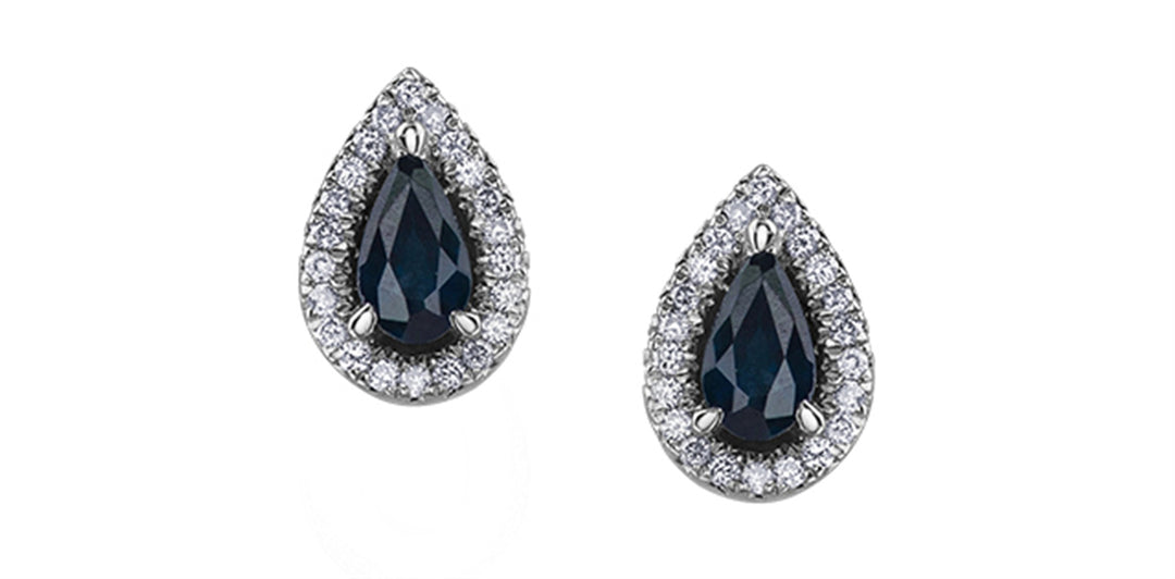 10K White Gold Sapphire & 0.11ct Diamond Stud Earrings