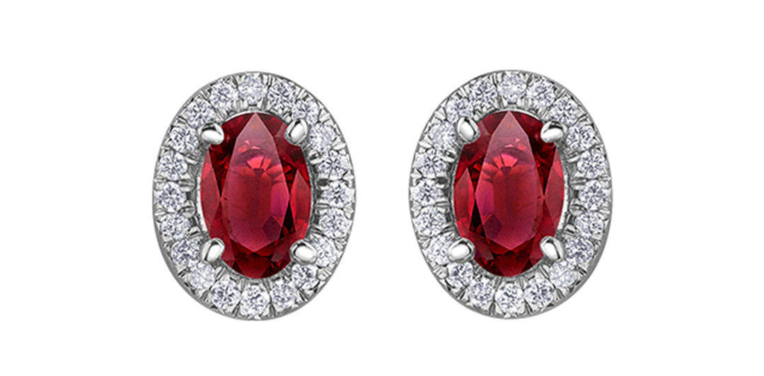 10KT Yellow Gold Ruby and 0.04ctw Diamond Stud Earrings