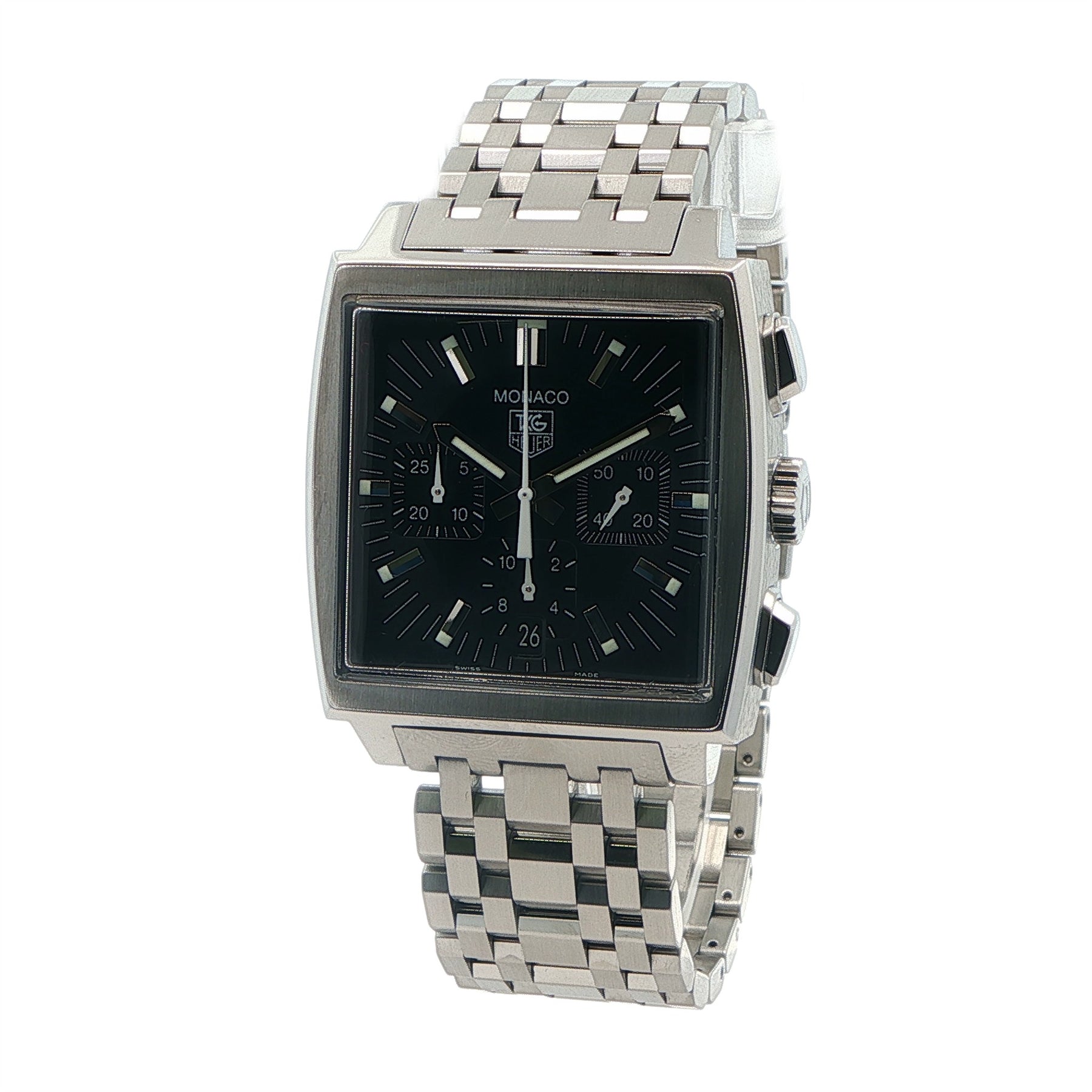 This TAG Heuer Monaco is the watch that refuses to blend in—and frankly, why should it? With its bold square case, sleek black dial, and unmistakable racing pedigree, it’s the horological equivalent of a vintage race car parked at the front of the grid—cool, confident, and just a little bit rebellious. This Monaco carries the DNA of the legendary Steve McQueen “King of Cool” era, but the CW2111-0 adds its own modern swagger with applied markers and crisp sub dials.Powered by the Calibre 17 automatic chronograph movement, it’s as precise as it is stylish—equally at home timing laps or turning heads. Strap it on, and you’re instantly transported to Monte Carlo circa 1970—except now, the Wi-Fi’s better and you don’t have to wear a jumpsuit to feel like a racing legend.