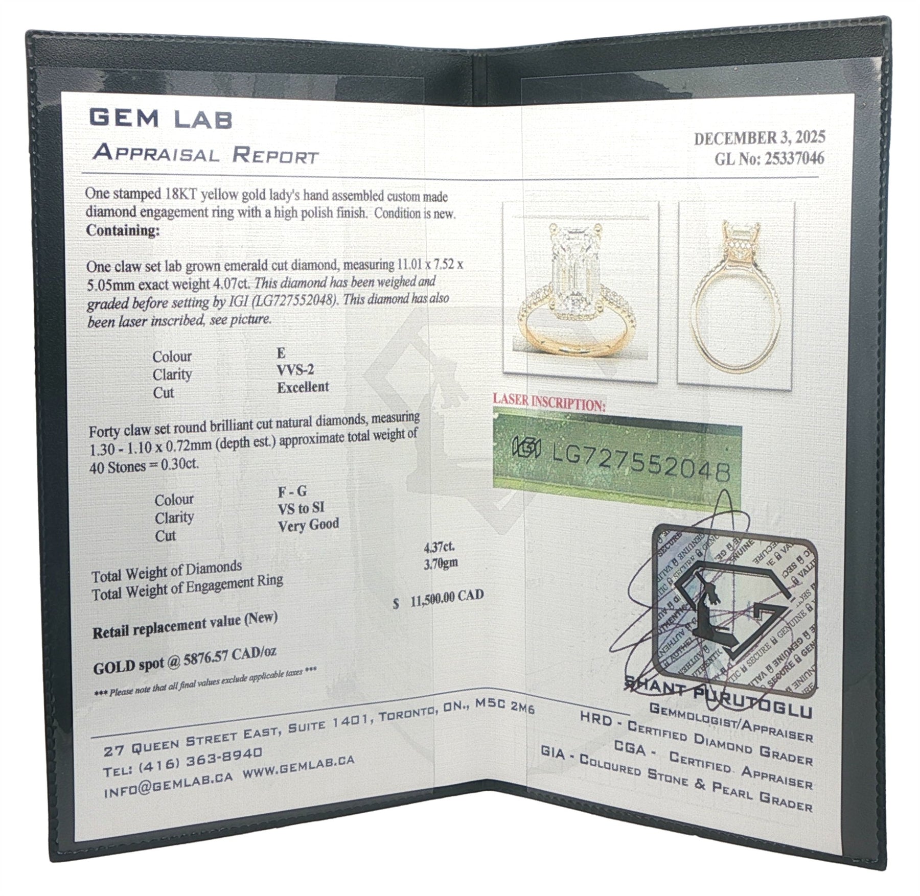 18KT Yellow Gold 4.37ctw Lab Grown Diamond Engagement Ring
