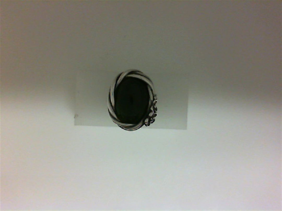 Silver Nephrite Jade & CZ Ring