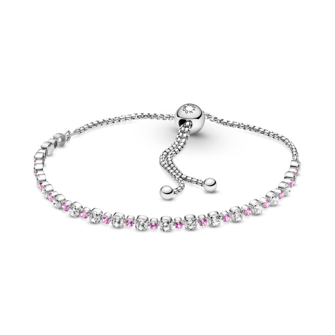 Pink & Clear Sparkle Slider Bracelet, Synthetic Pink Sapphire & Clear CZ