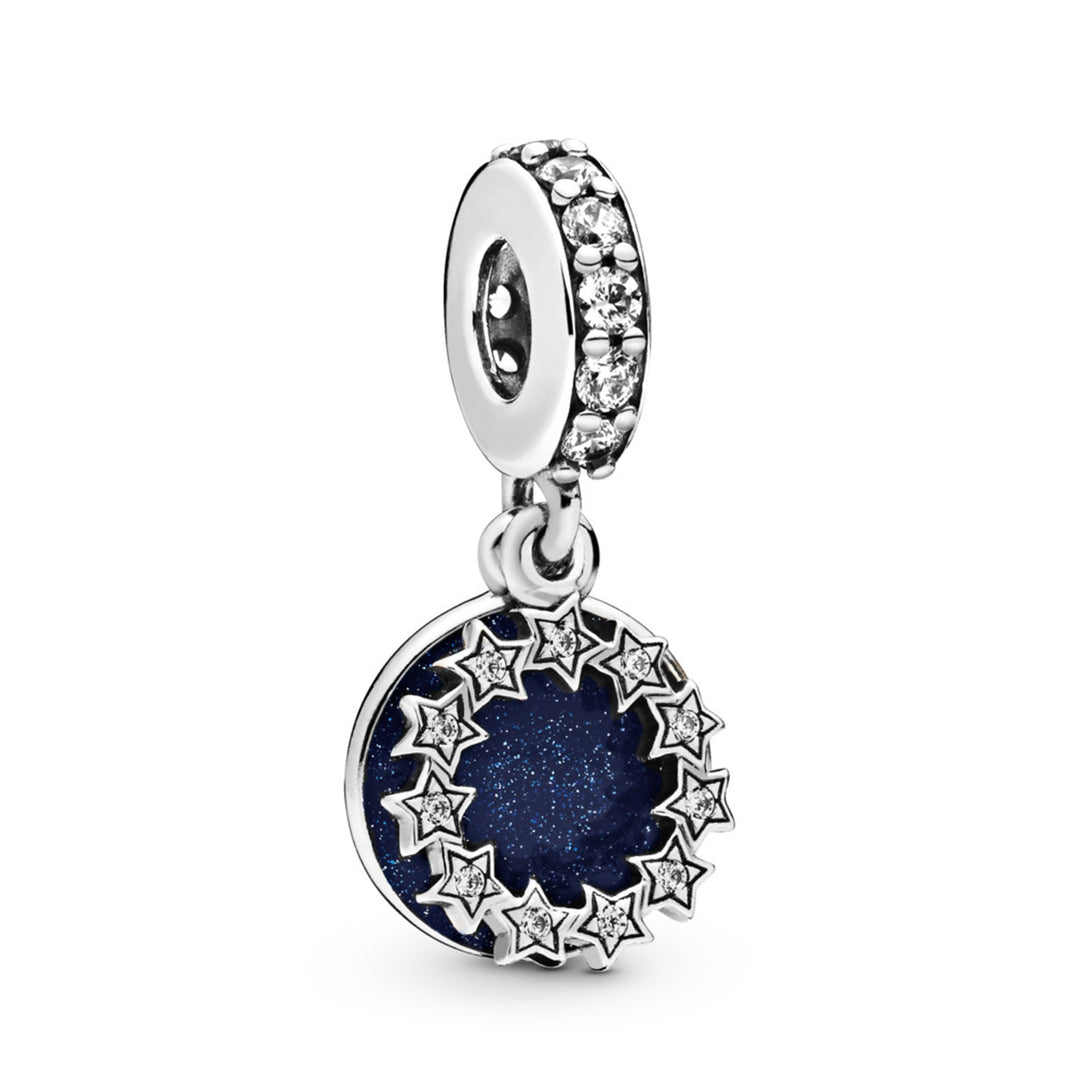 Sterling silver charm with moonlight blue crystal and clear cubic zirconia