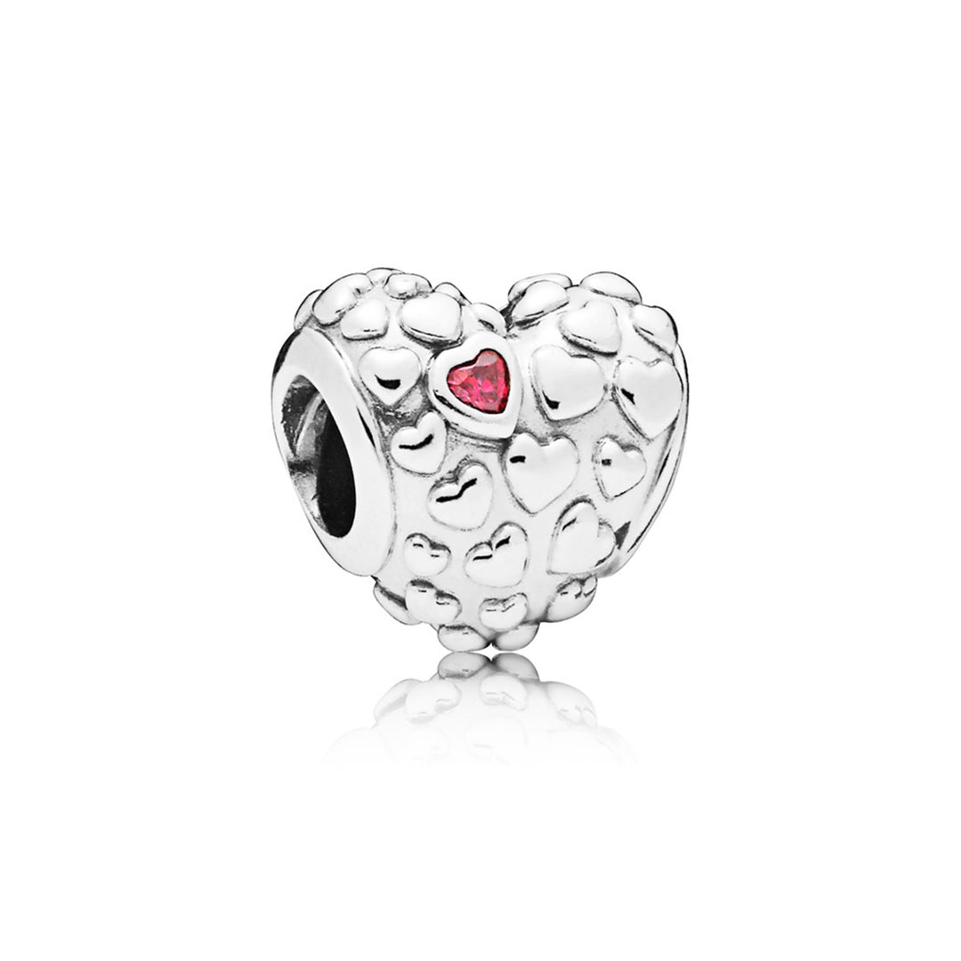 Heart Rose charm with rose pink crystal, orchid pink crystal and white enamel
