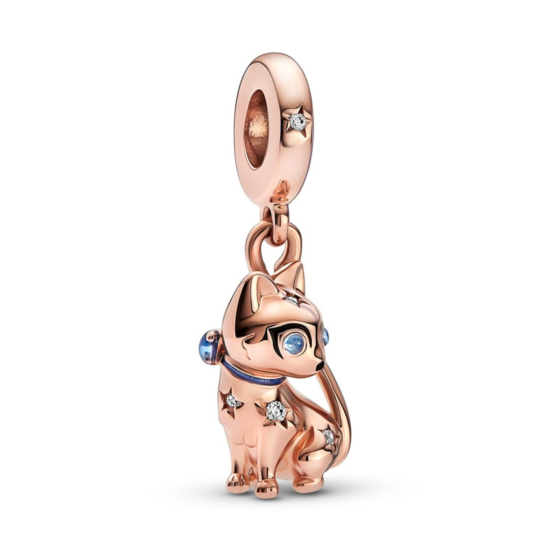 Cat 14k rose gold-plated dangle with clear cubic zirconia