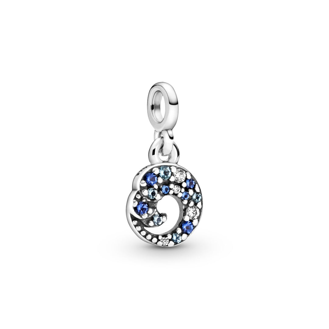 Wave sterling silver dangle with clear CZ and icy blue, skylight blue and stellar blue crystal