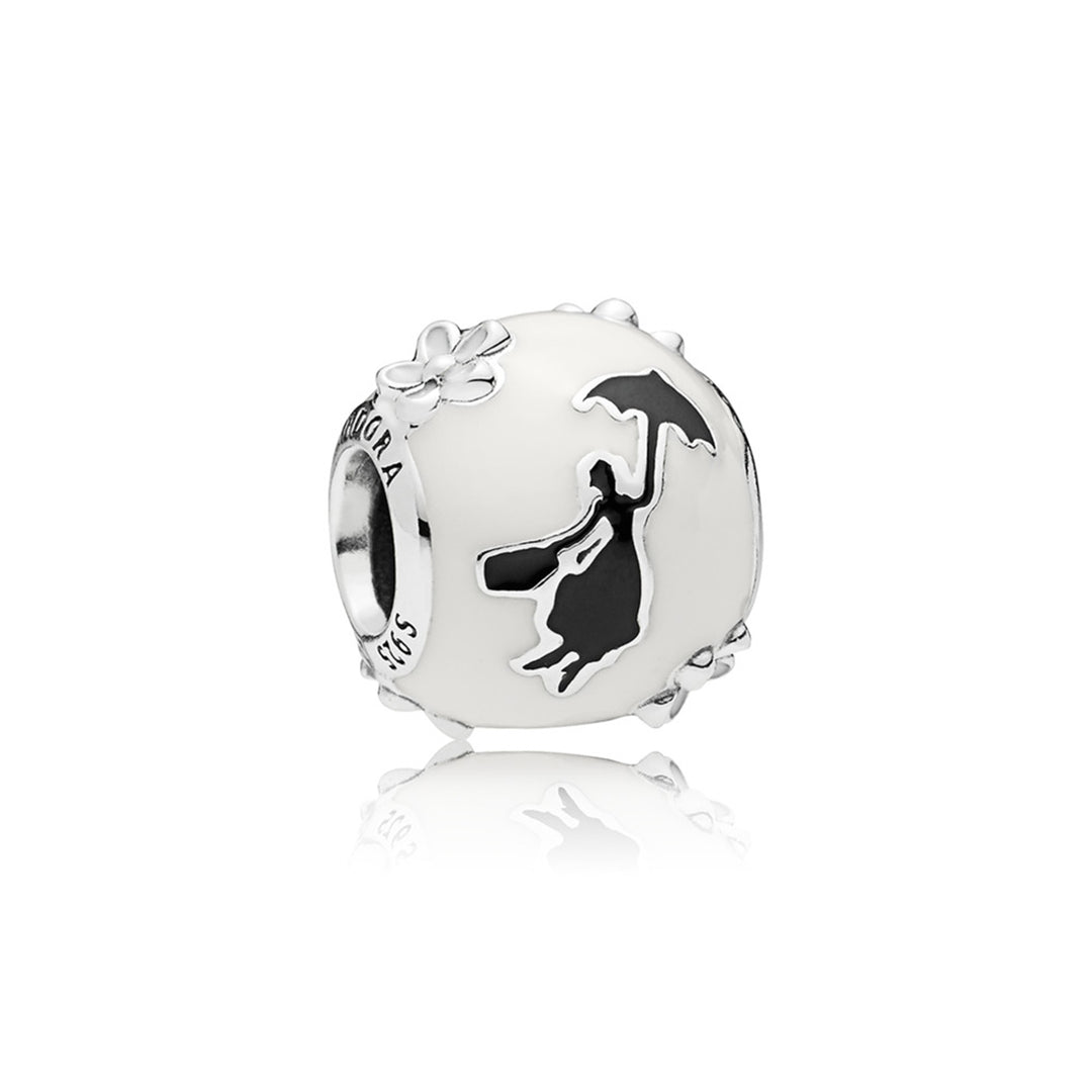 Disney Mary Poppins charm in sterling silver with white and black enamel