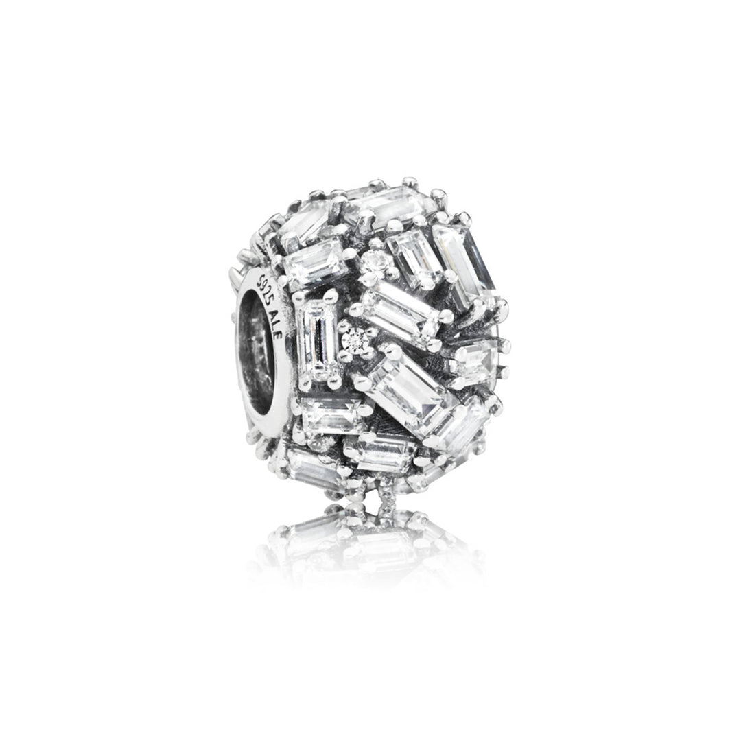 Ice cube charm in sterling silver with 30 claw-set baguette-cut and 11 claw-set clear CZ